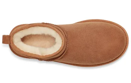 The UGG Classic Ultra Mini takes the classic UGG silhouette to new heights – literally! The lower shaft height of this boot gives it a more contemporary look and feel, with enhanced versatility for any outfit. This fabulous boot is pre-treated to ensure lasting quality and maximum use - you won’t have to worry about scuffs or dulling over time. Luxurious sheepskin lines the interior for incredible comfort and warmth, while the flexible, lightweight sole offers traction and stability. Your style options are endlessly varied - sport these signature UGGs with anything from a dress to skinny jeans; you'll always look picture perfect!