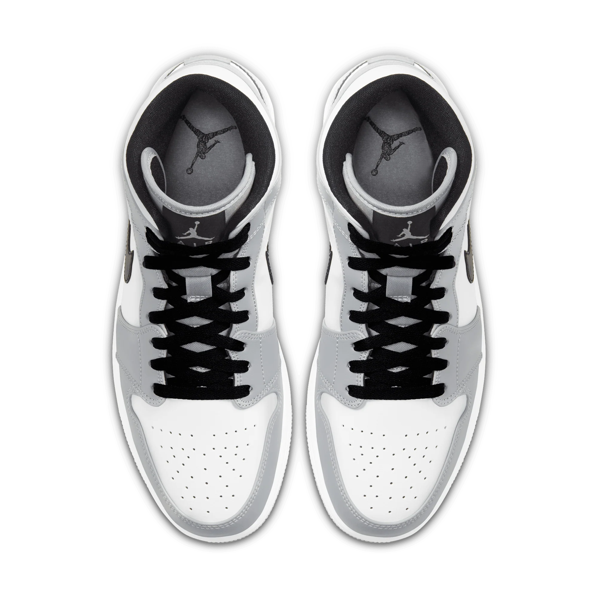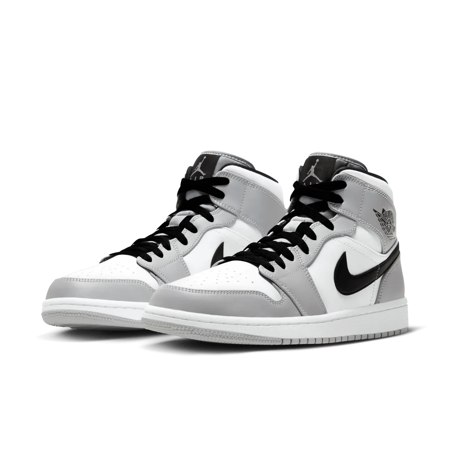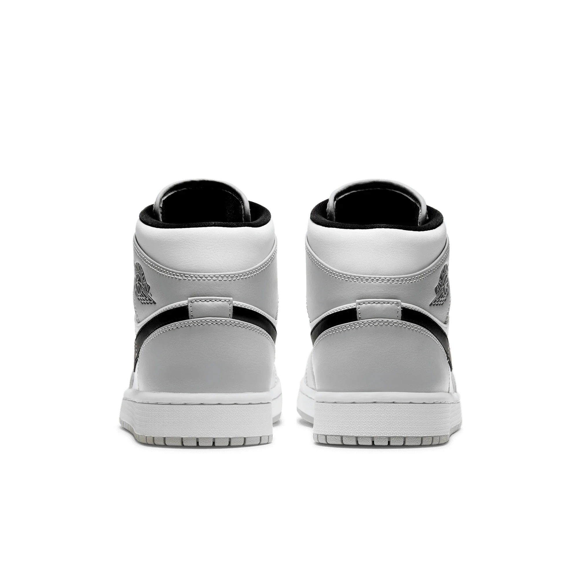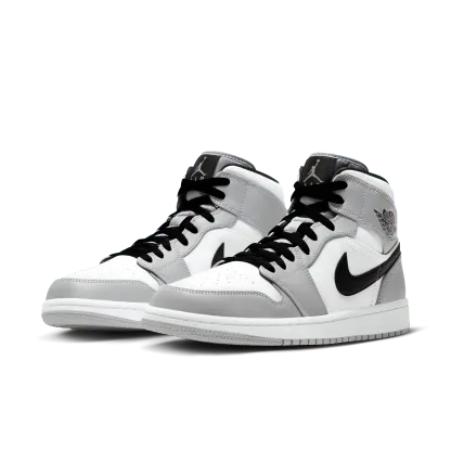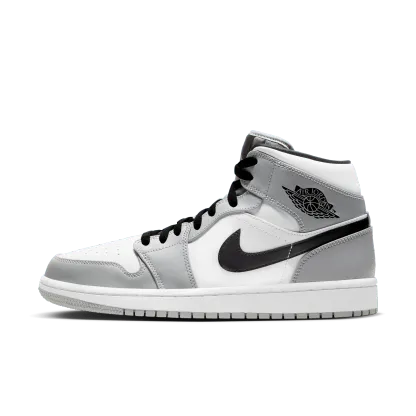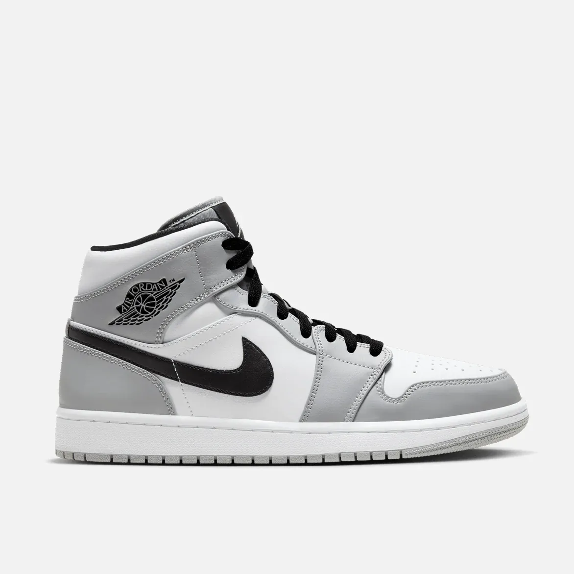 Looking closer to the Air Jordan 1 Mid 'Smoke Grey' comes constructed with a mixture of leather and plastic. Featuring shades of Light Smoke Grey, Black and White, it also has Wings logos placed on the collars. Completing the look is a white midsole and grey rubber outsole. It is an easy-to-match style for your ordinary daily outfits.