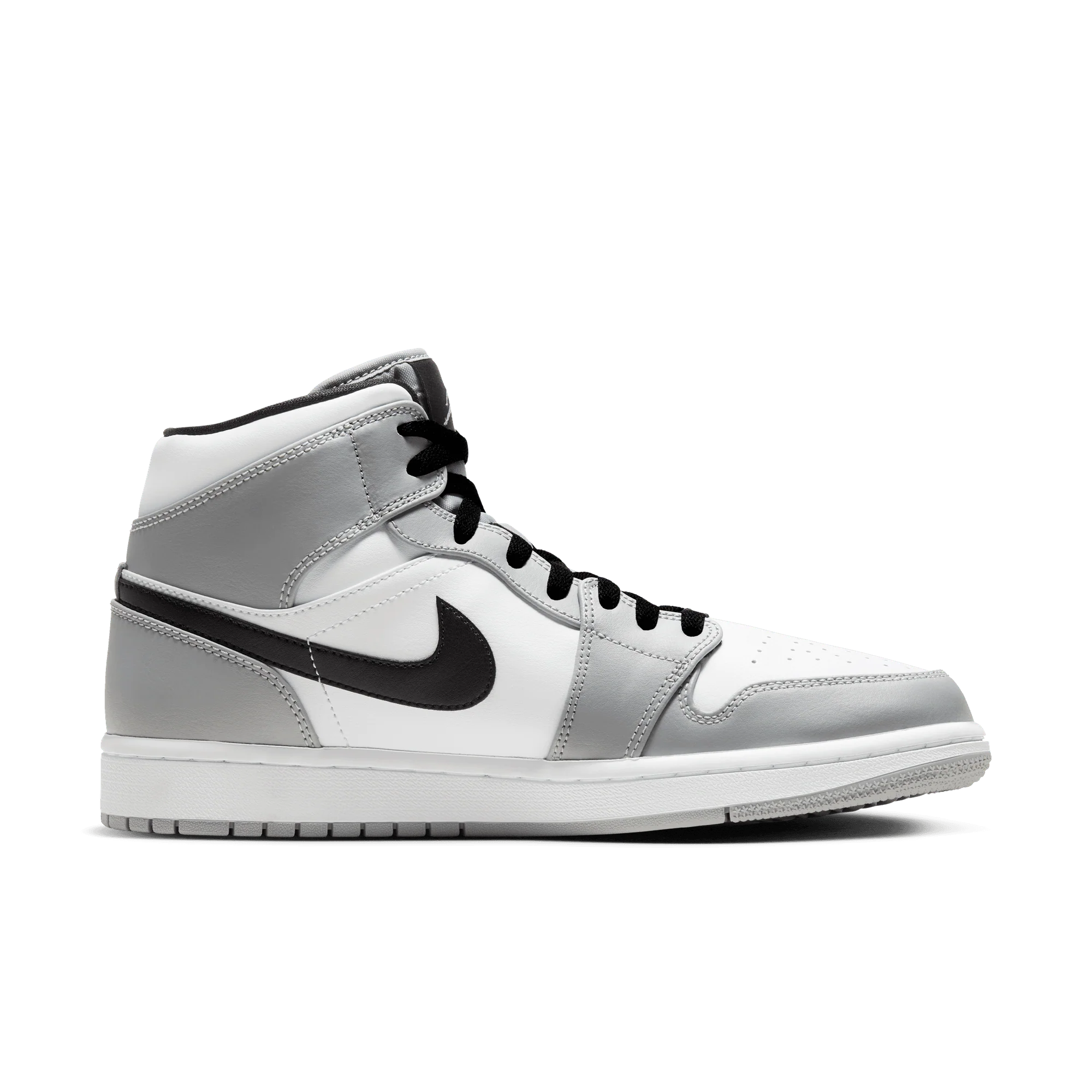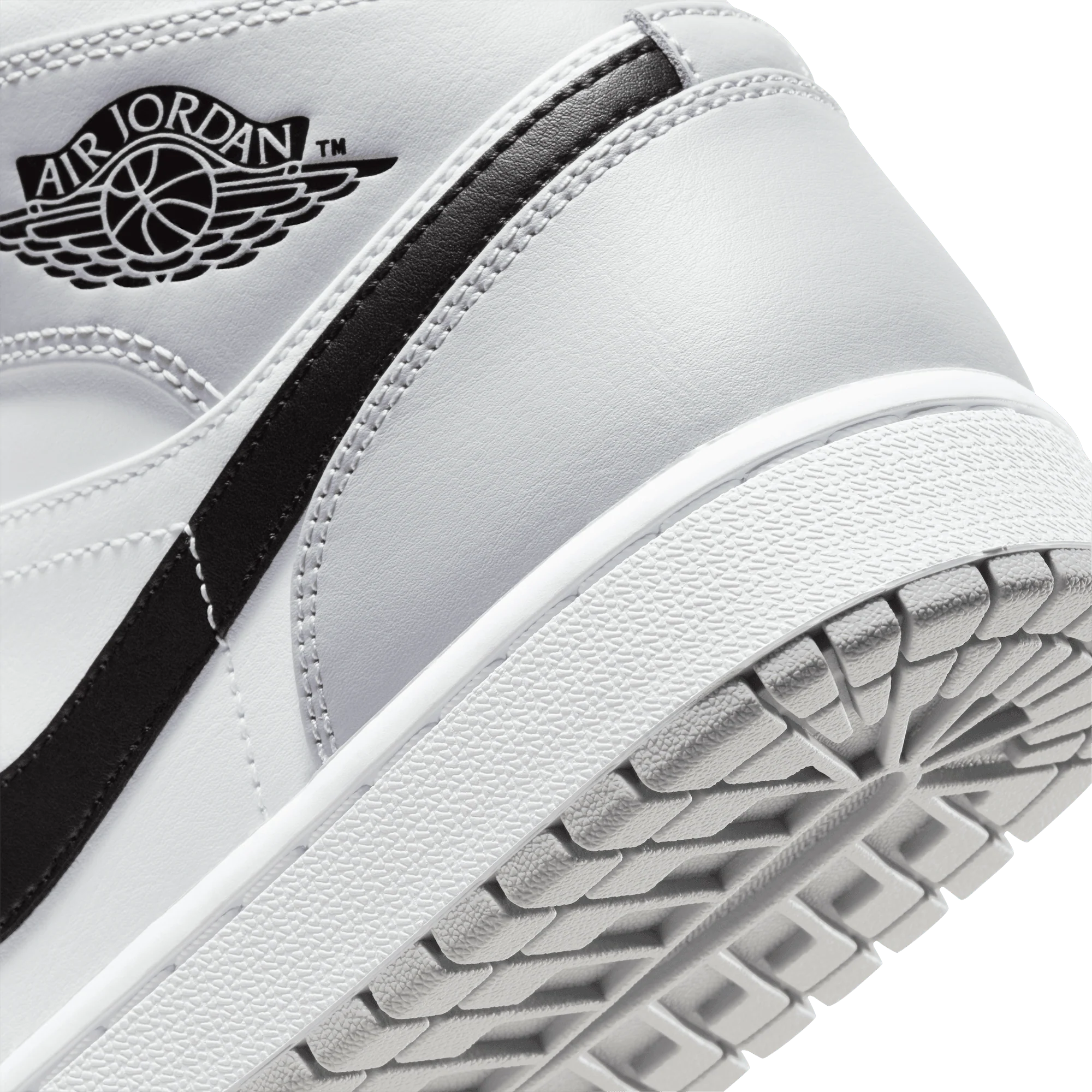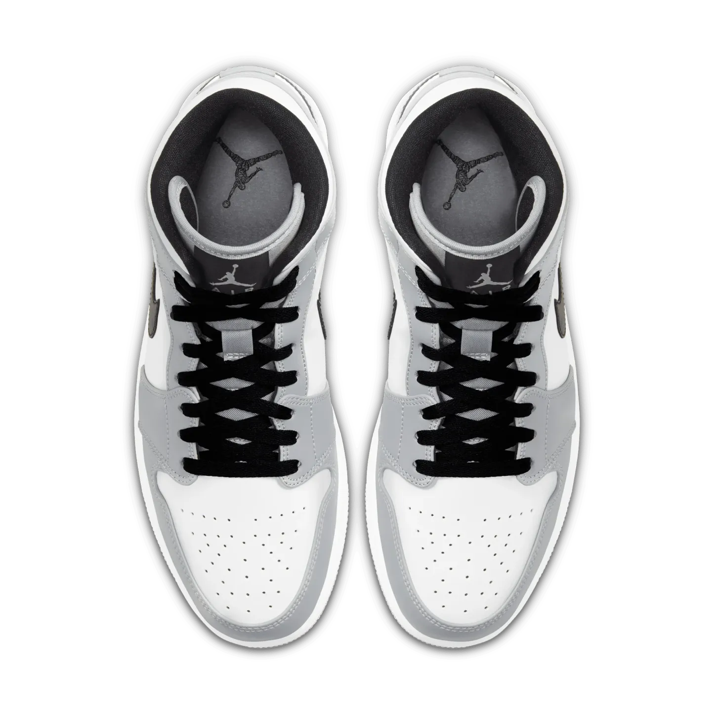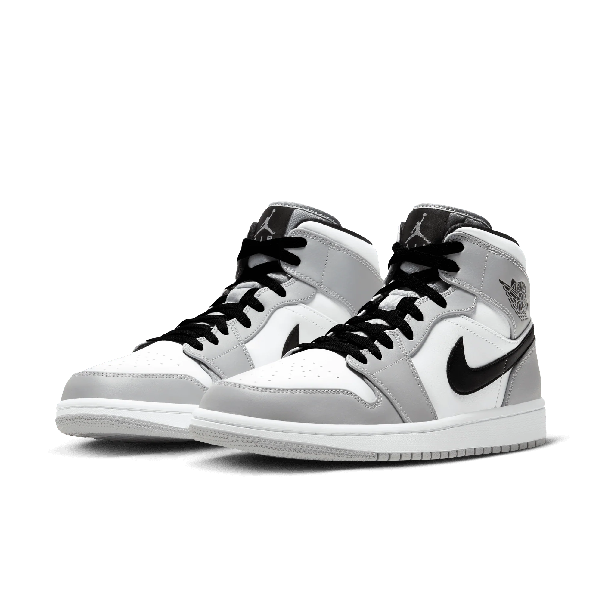 Looking closer to the Air Jordan 1 Mid 'Smoke Grey' comes constructed with a mixture of leather and plastic. Featuring shades of Light Smoke Grey, Black and White, it also has Wings logos placed on the collars. Completing the look is a white midsole and grey rubber outsole. It is an easy-to-match style for your ordinary daily outfits.
