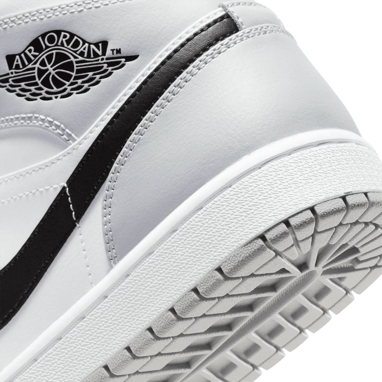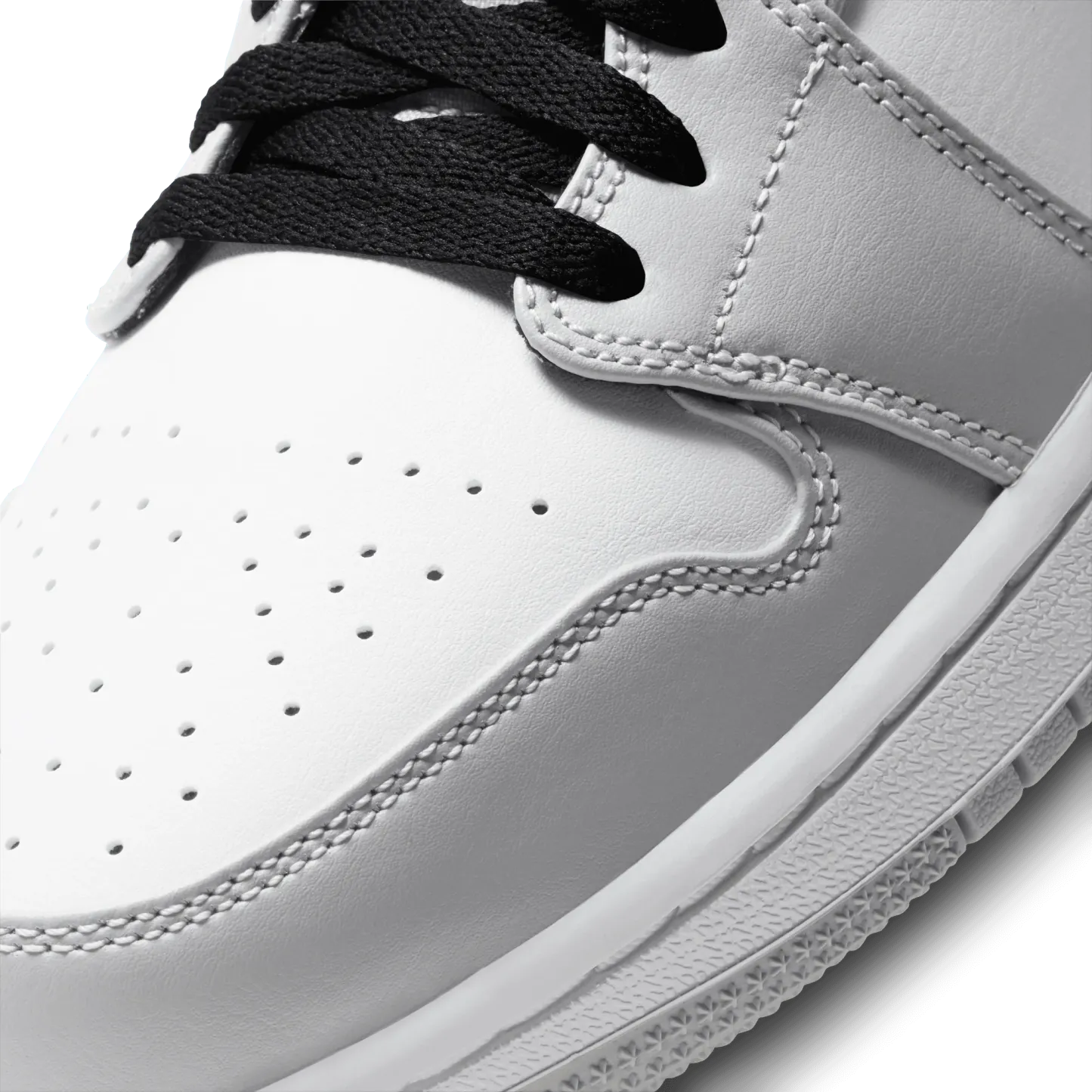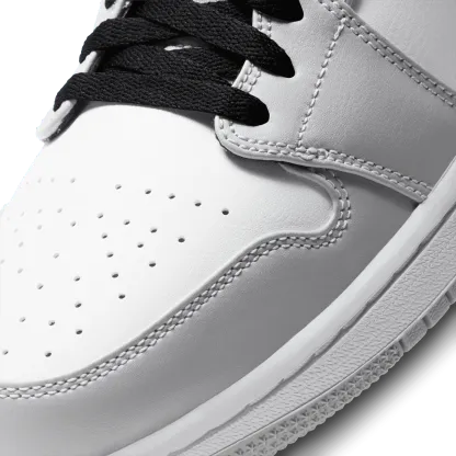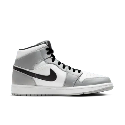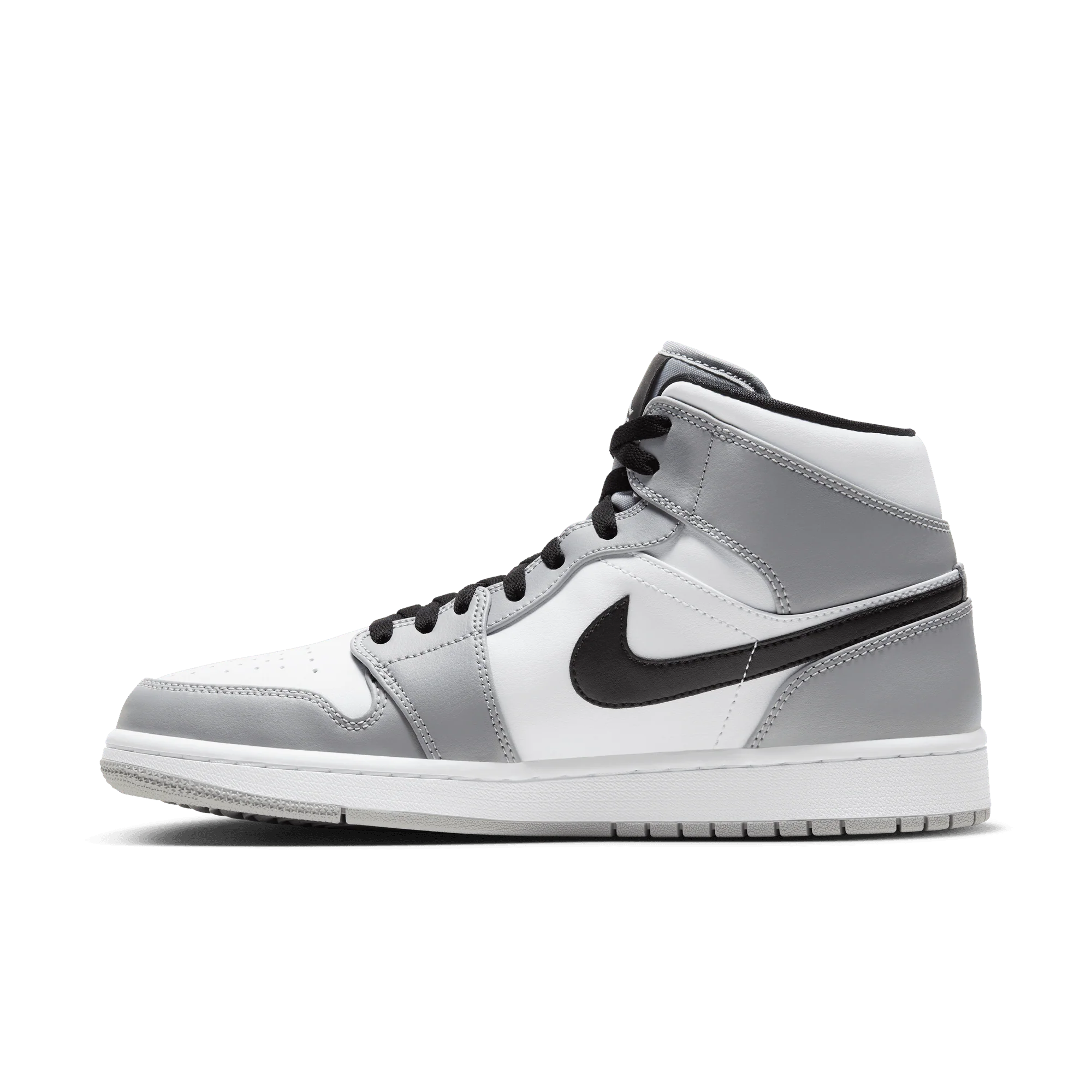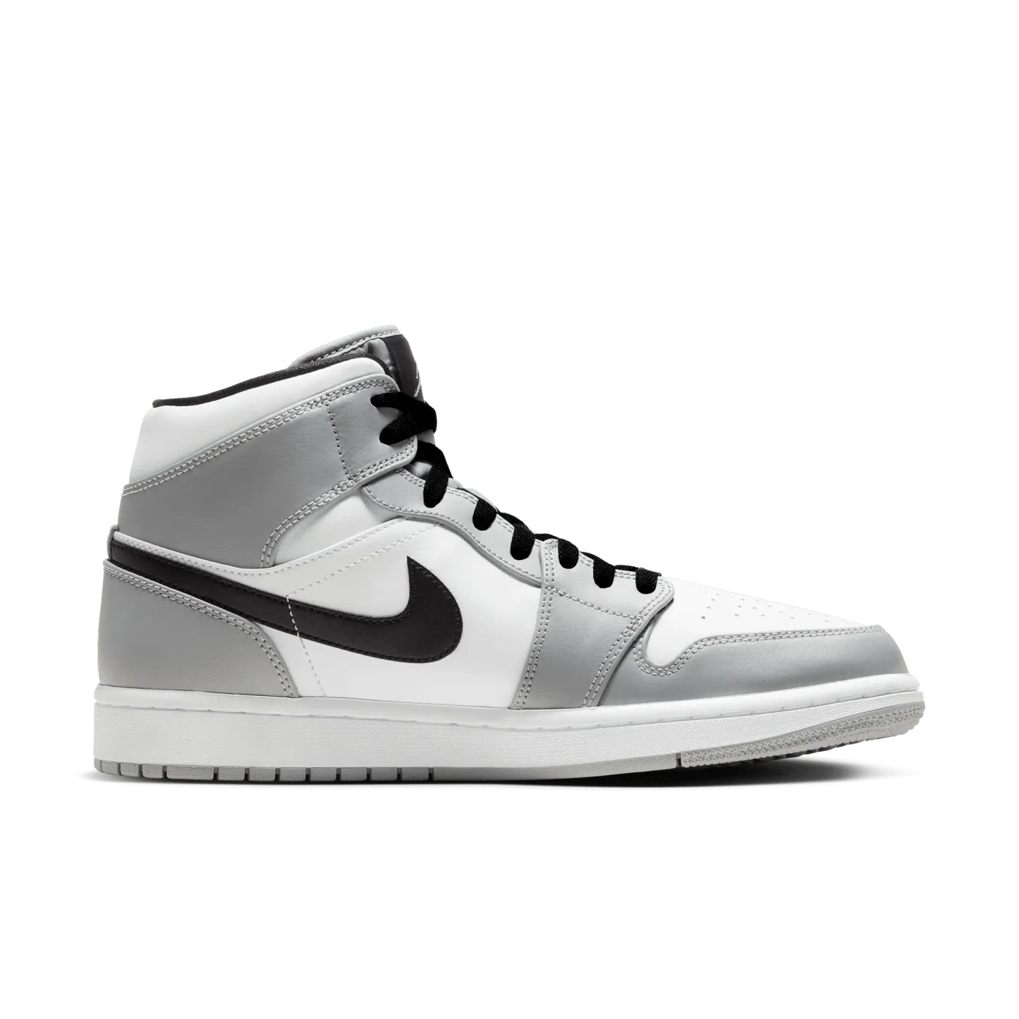 Looking closer to the Air Jordan 1 Mid 'Smoke Grey' comes constructed with a mixture of leather and plastic. Featuring shades of Light Smoke Grey, Black and White, it also has Wings logos placed on the collars. Completing the look is a white midsole and grey rubber outsole. It is an easy-to-match style for your ordinary daily outfits.