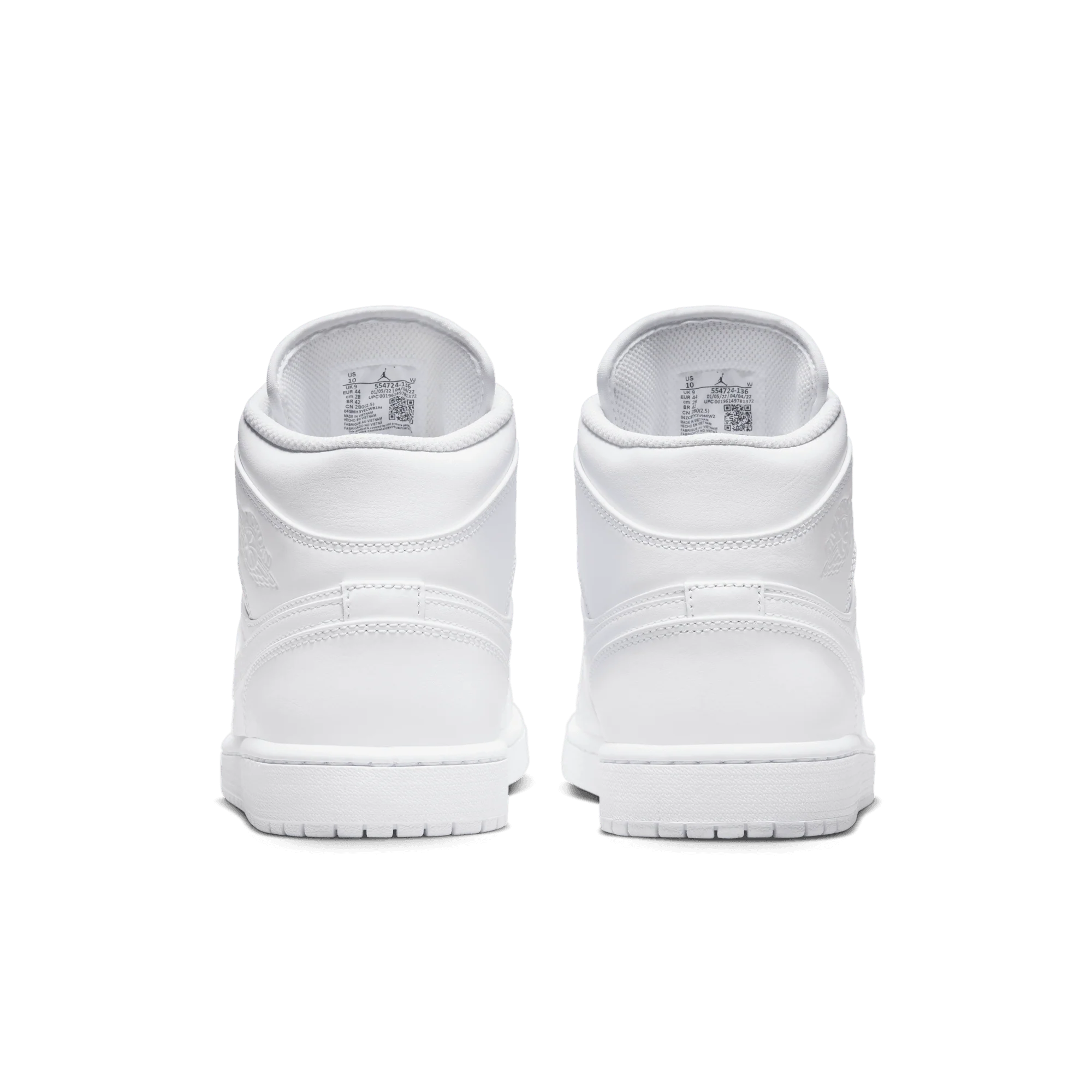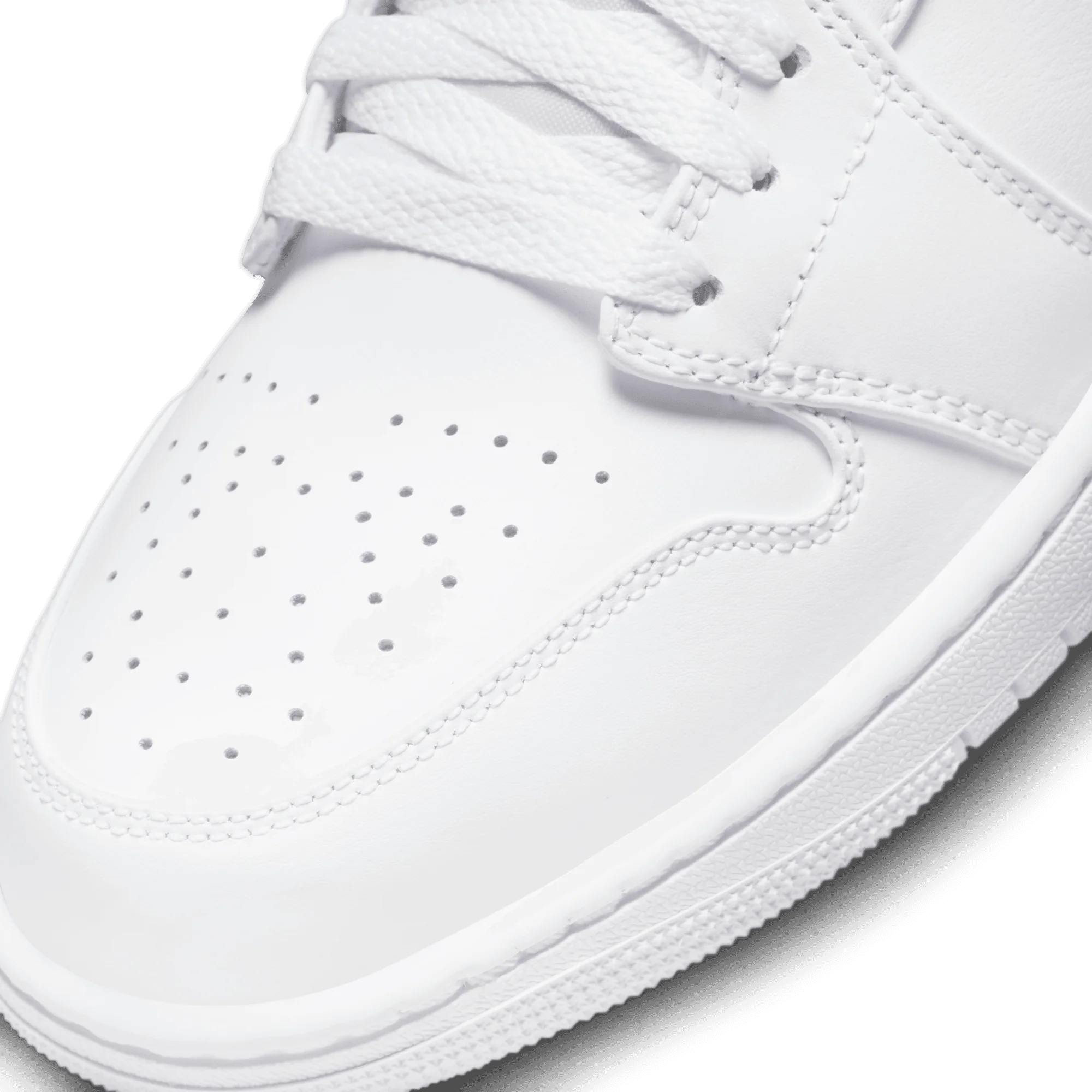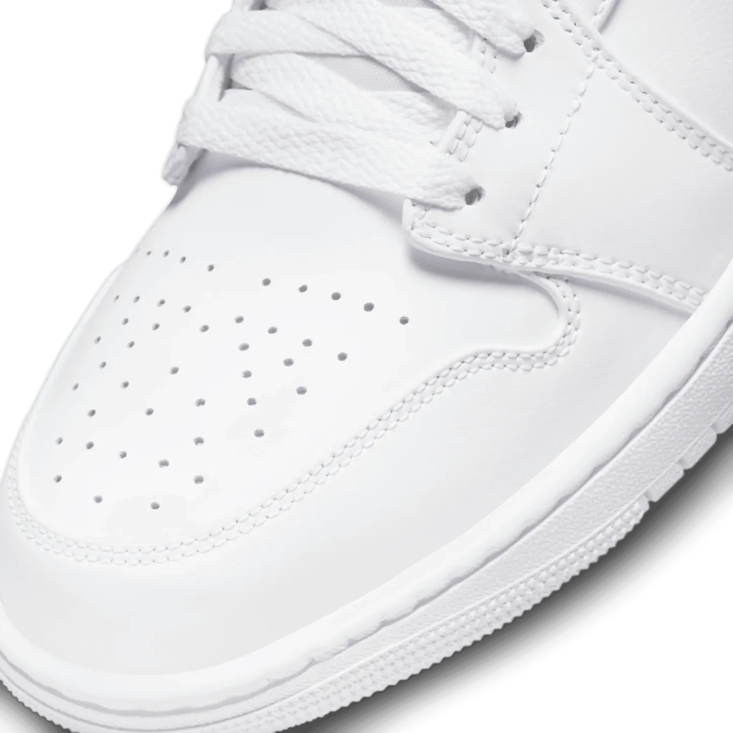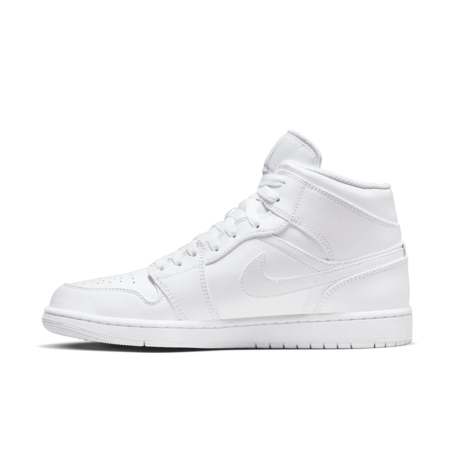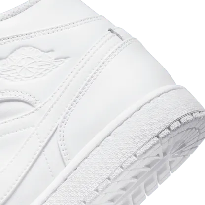 The mid top version of the original Air Jordan embodies everything you love about the Air Jordan 1. The all white premium nubuck and full-grain leather upper features a perforated toe, Jumpman tongue tag and tonal swoosh and debossed "Jordan Wings" logo on the ankle. The white rubber cupsole contains an Air-Sole unit in the heel and a tonal nylon tongue, lining and laces complete the look. Great for everyday wear with an iconic style that will never fade.