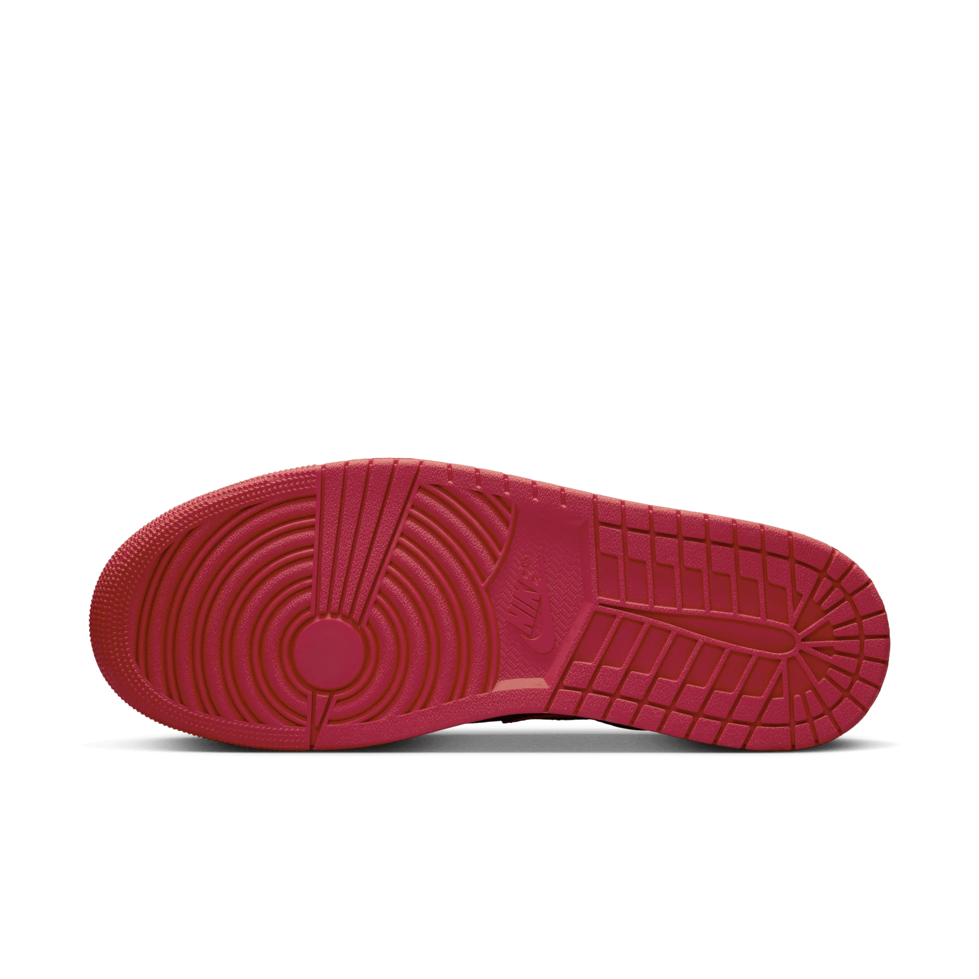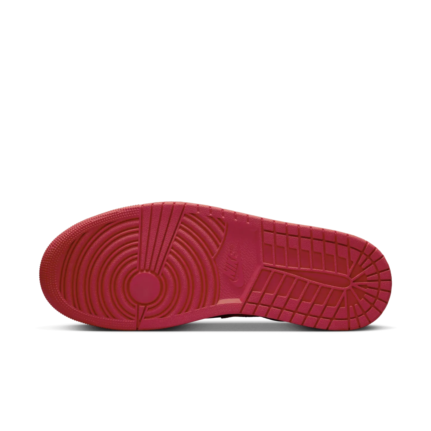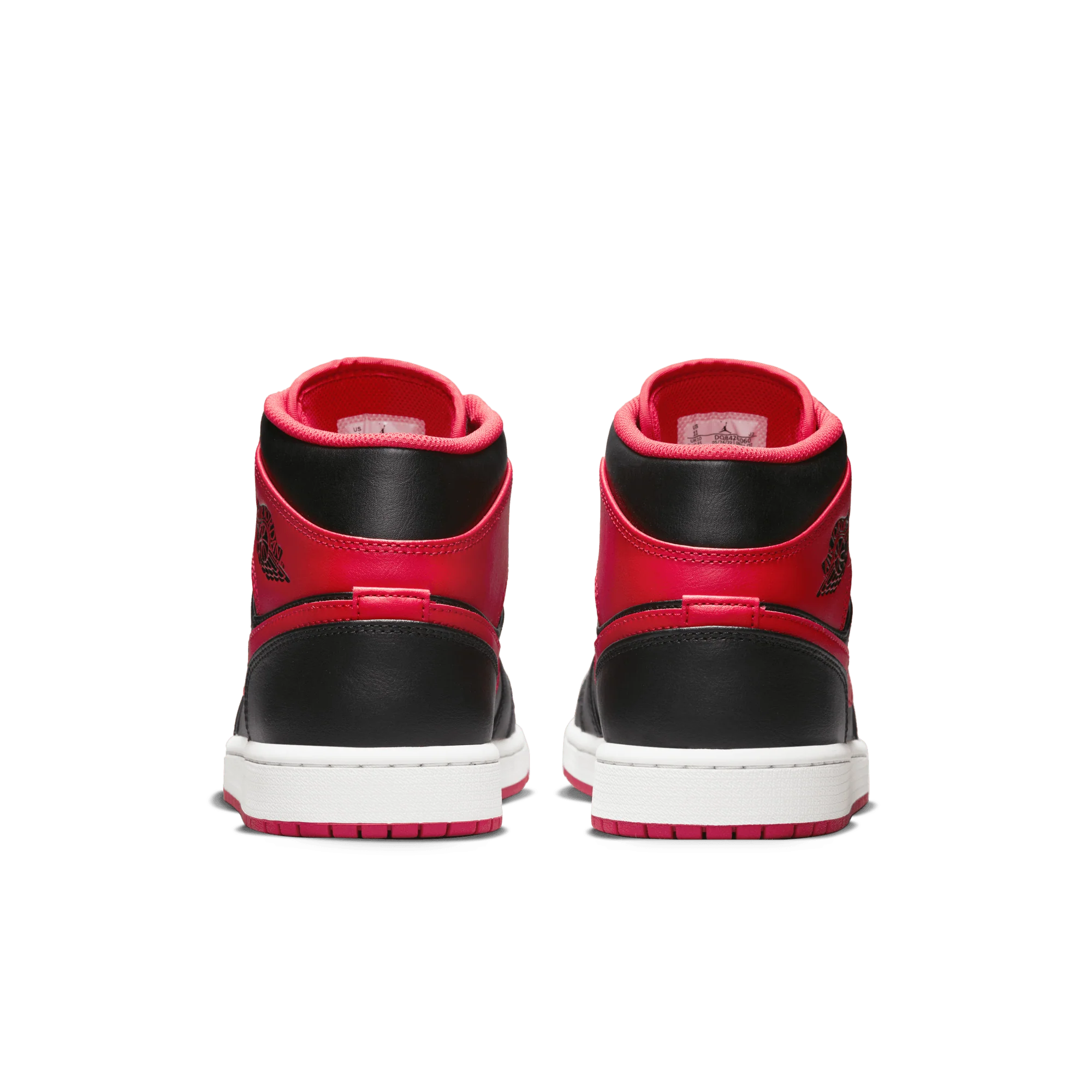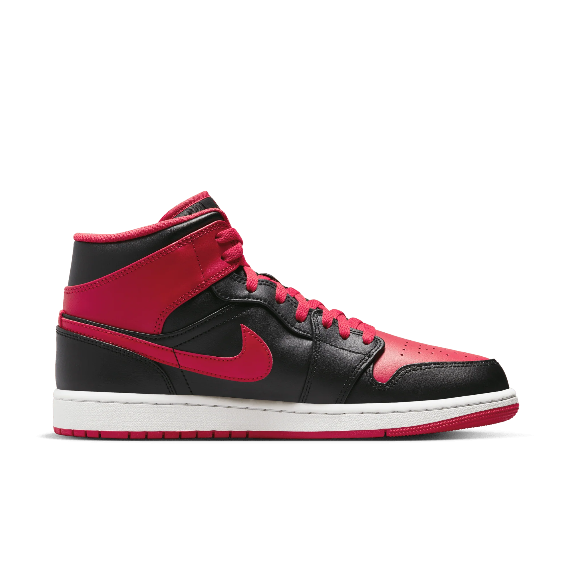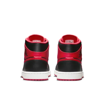 The most famous colorway of the AJ1 gets flipped on the this new mid top release, the Air Jordan 1 Mid "Alternate Bred". The full-grain leather upper switches up the iconic color blocking with red on the toe, ankle, tongue and swoosh, and black covering the rest of the full-grain leather upper. A black and red Jumpman tongue tag, debossed black "Wings" logo on the ankle, white rubber midsole capped with a red rubber outsole, and a red lining and laces complete the new look.