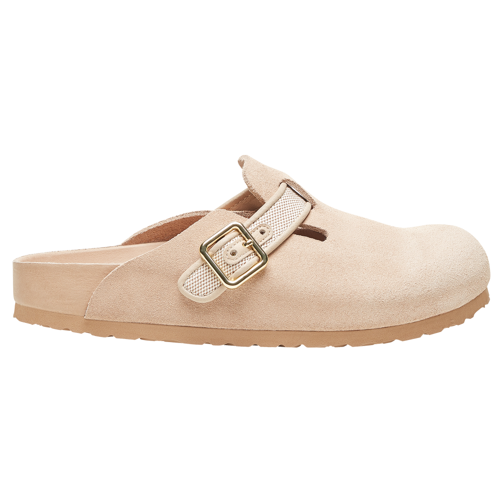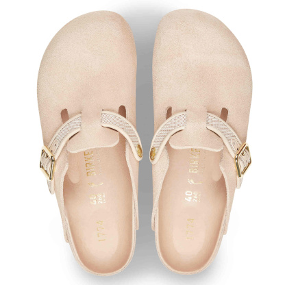 Remaking the iconic Boston, our unisex bircapskenstock 1774 Boston marries our craftsmanship with edge. This unisex style features versatile multipurpose soft suede leather, with a french piped canvas strap. The newly developed square buckle is for perfect adjustability. The Boston's suede leather upper is combined with a cotton blend canvas strep in French piped leather.