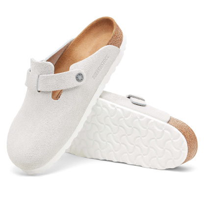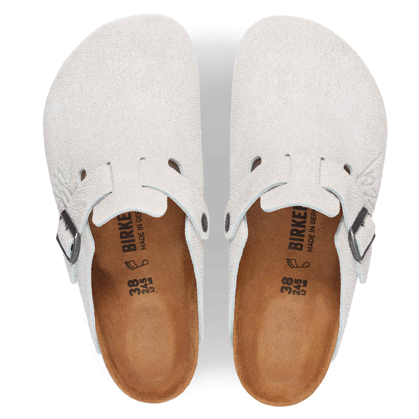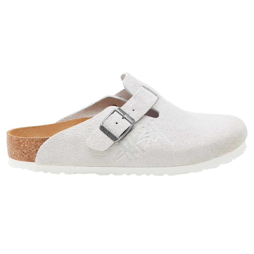 Balancing everyday style with luxury versatility, the Boston Suede Stussy shows where bircapskenstock meets streetwear. Crafted from a single piece of suede, the Boston Suede Stussy features an anatomically designed footbed, dark brown suede lining, and the Stussy logo. A perfect seasonless shoe, in bone, dusty pink, and caramel.