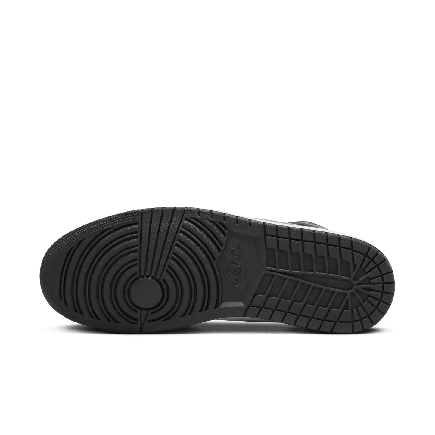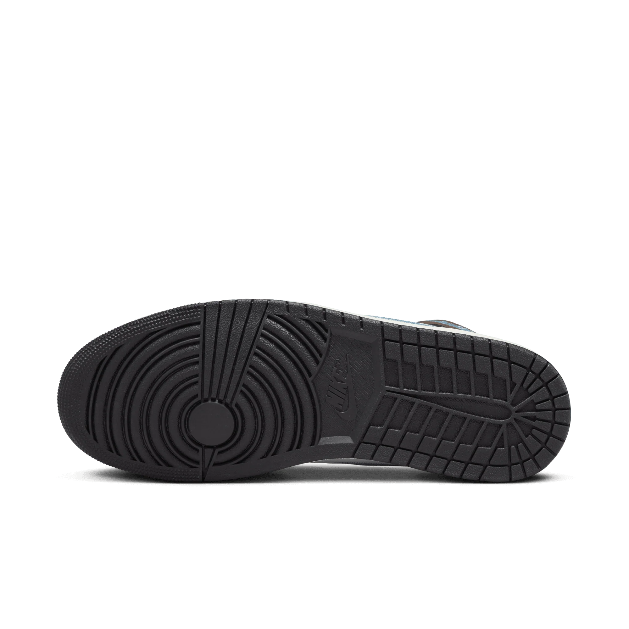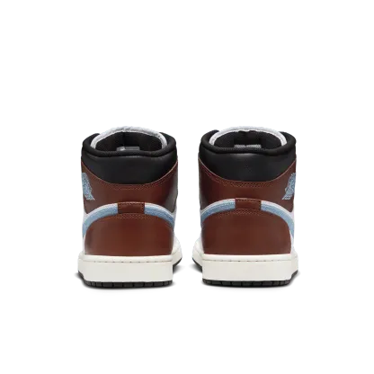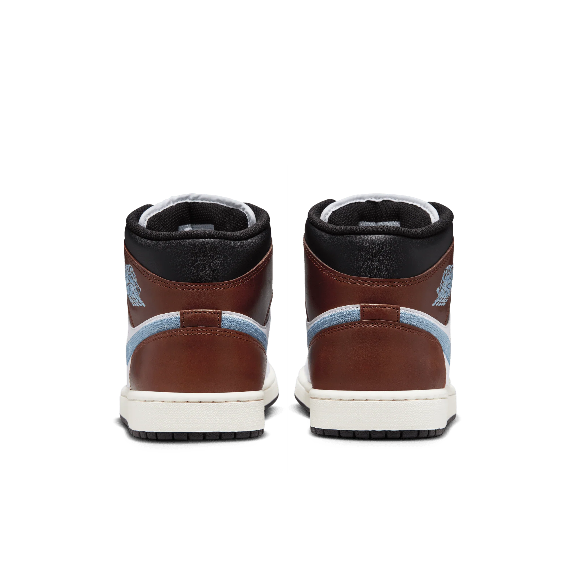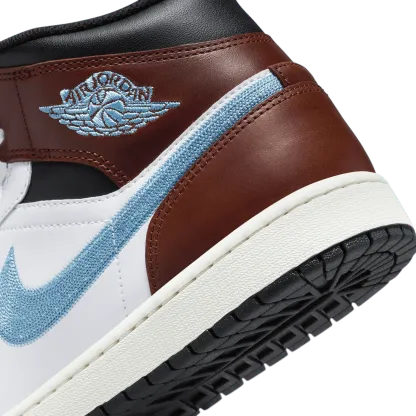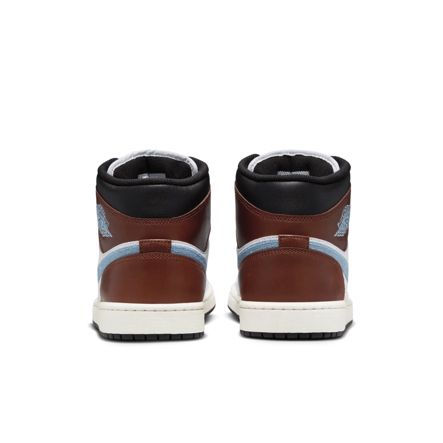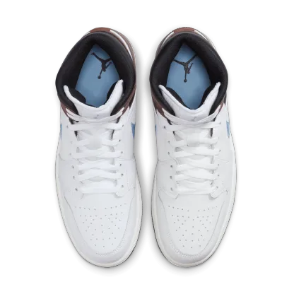 The mid top version of the original Air Jordan embodies everything you love about the Air Jordan 1 MID. This "White / Blue Grey" colorway layers different shades of brown and on top of a white body with brown and blue grey Jumpman tongue tag, leather swoosh and "Jordan Wings" logo on the ankle filling in the details. The white rubber midsole contains an Air-Sole unit in the heel and is capped off with a black outsole.