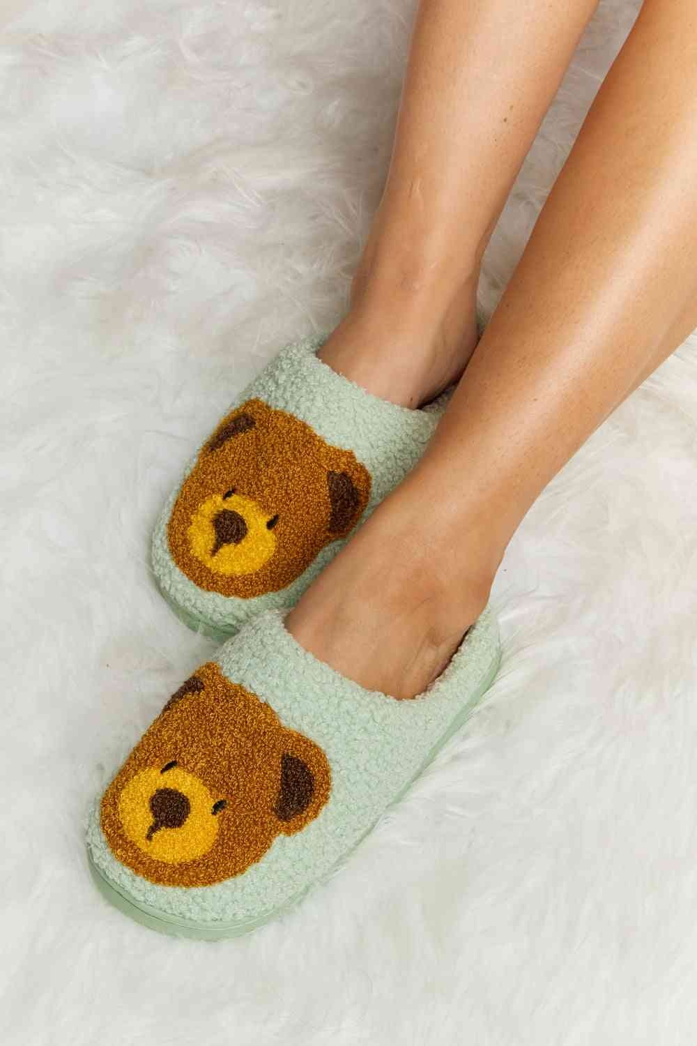 These adorable slippers feature a delightful teddy bear print, adding a touch of cuteness to your cozy indoor moments. Crafted from ultra-soft plush material, they provide a gentle, soothing feel to your feet, making them ideal for relaxation and lounging. The slip-on design ensures easy wearing, while the sturdy yet flexible sole offers excellent support and traction. Treat yourself or someone special to these irresistibly snug and charming slippers for a delightful winter experience.